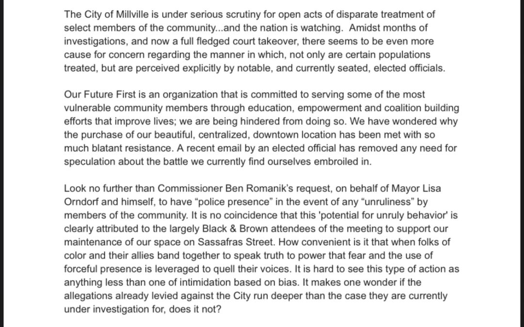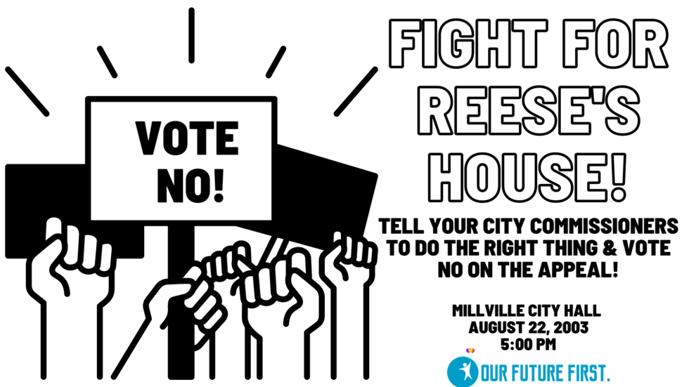 As you know, we recently went in front of the Millville City Commissioners for the appeal against the zoning against Reese’s House. As I am sure you also know, they